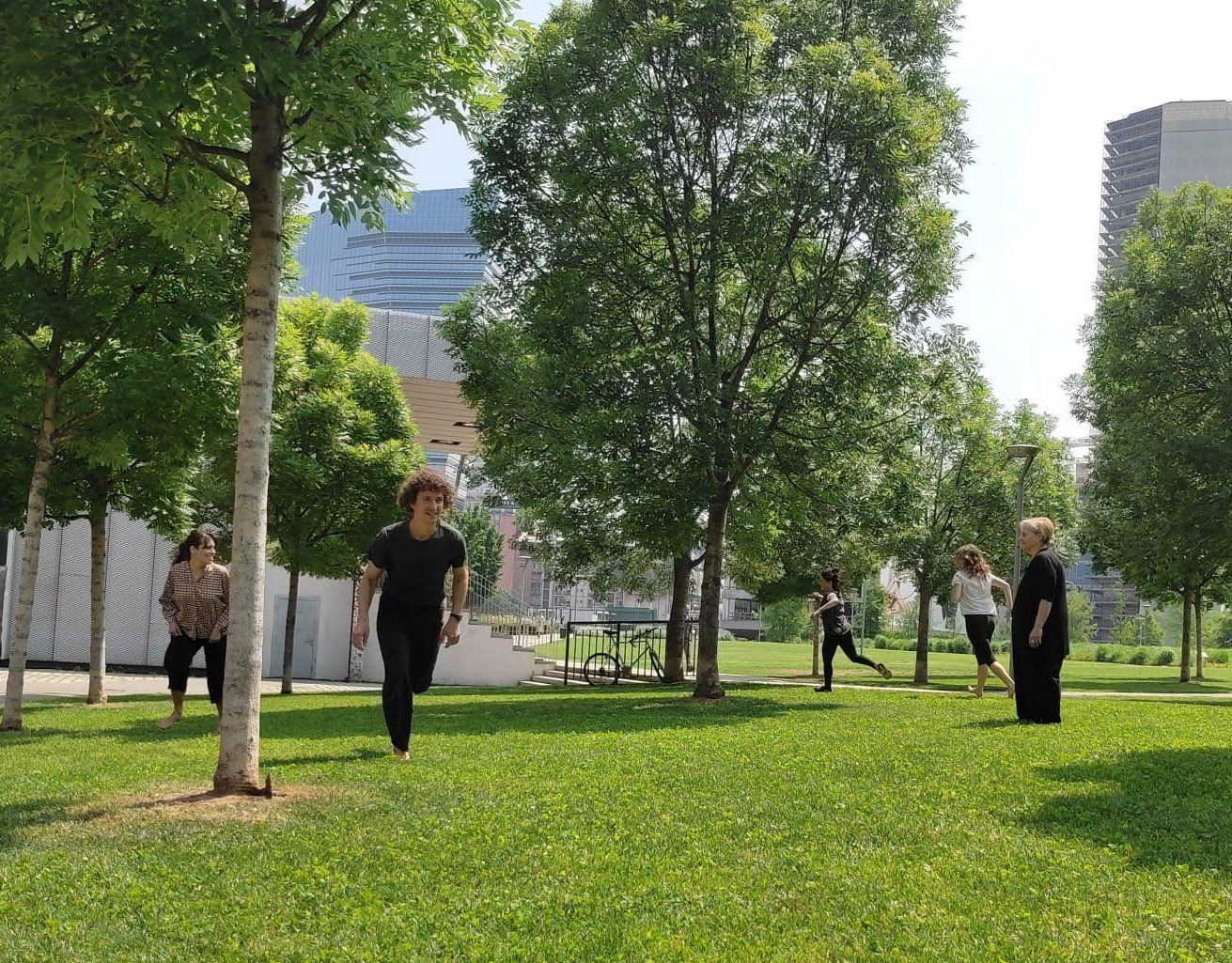 In our creative processes, to warm up, be together, have fun, create community, foster a collective spirit, and stimulate creativity, we start from a practice developed by the choreographer and director from Ceará, Valéria Pinheiro: corpo brincante (playful body), which is an intersection of Brazilian folk dances (frevo, maracatu, cavalo marinho, côco, afoxé, axé). Alongside this, we incorporate stretching techniques, modern educational dance (Laban), capoeira, classical ballet, Grotowski's physical actions method, yoga, biodanza, and singing.